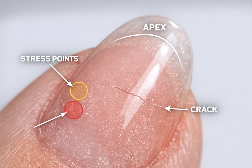Cracking patterns are never random. They reflect how stress moves through the nail structure over time.