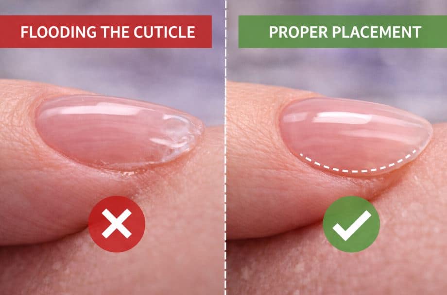 When builder gel touches the skin or cuticle tissue, it creates improper curing angles and micro-separation. Even if cleaned, the product edge is often compromised.