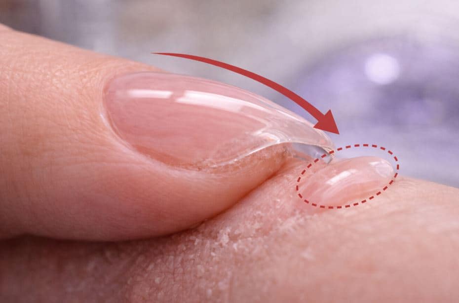 This is especially common when the apex is placed too far forward. In those cases, the stress area lacks support, and the cuticle zone absorbs excess tension.